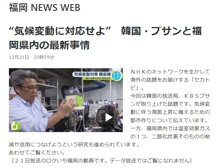 藤川茂紀教授( マルチスケール構造科学ユニット)が、NHK福岡「ロクいち!福岡」の「セカトピ」というコーナーに出演しました。また、本放送について、12月21日のNHK福岡 NEWS WEBに掲載されました。
