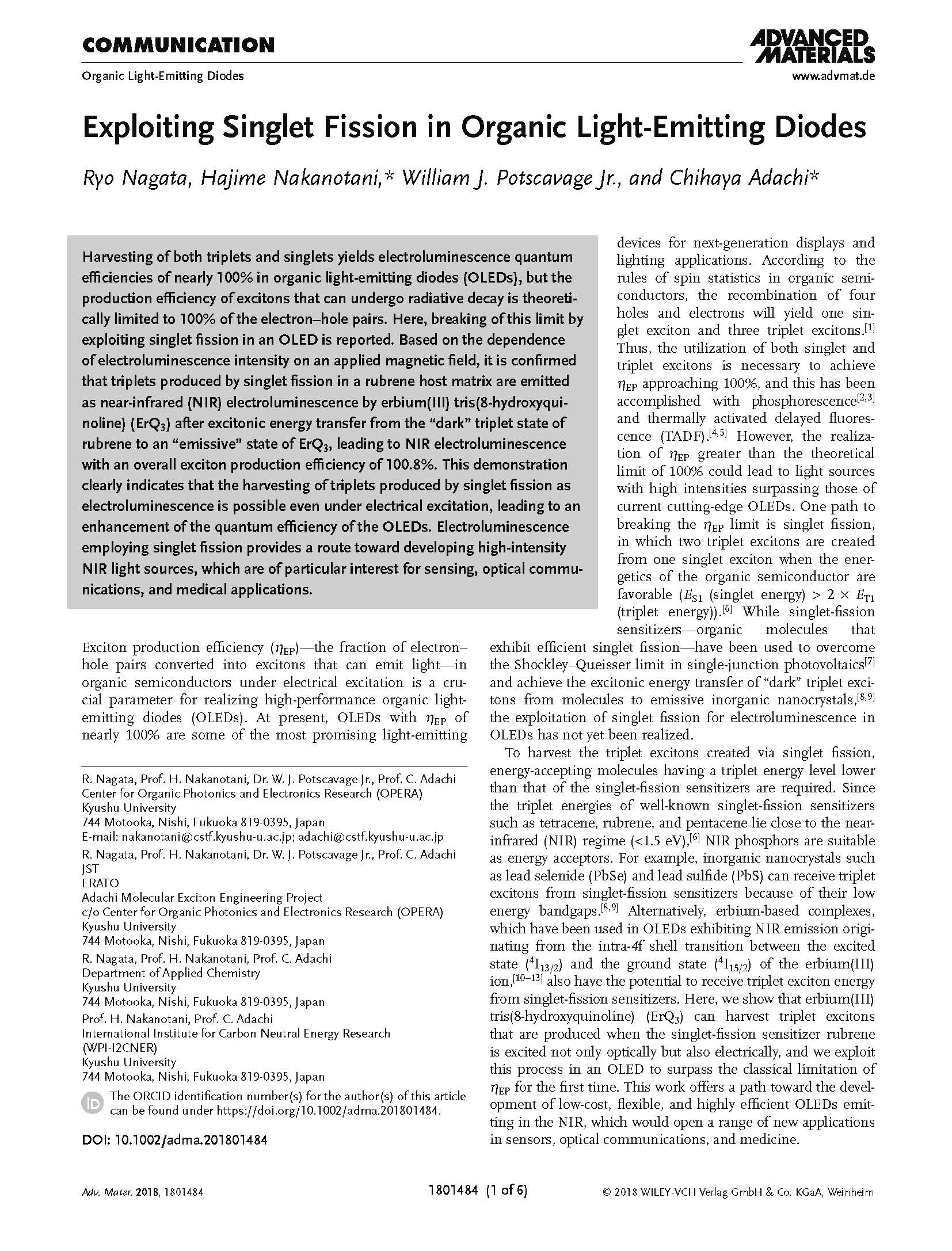 論文:Exploiting Singlet Fission in Organic Light‐Emitting Diodes
