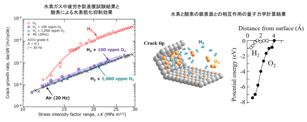 材料・輸送・熱水素エネルギー 水素脆化・水素中クリープ・不純物・水素脆化抑制・水素中フレッティング疲労 久保田 祐信 (Lead PI) 教授・主任研究者 研究ユニット:物質変換科学ユニット E-mail: Website:https://hyoka.ofc.kyushu-u.ac.jp/search/details/K001362/index.html 研究概要 水素脆化特性評価と不純物による水素脆化の抑制 疲労き裂進展・疲労寿命・疲労限度・破壊靭性等に及ぼす水素の影響の解明と水素ガスに添加した不純物による水素脆化の抑制について研究 高温水素中のクリープ強度特性 600℃の水素ガス中でクリープ強度特性に対する水素の影響について研究 水素ガス中のフレッティング疲労特性 摩擦・摩耗を伴う金属疲労に及ぼす水素の影響に関して研究 技術 水素脆化特性試験 疲労き裂進展、疲労寿命、疲労限度、破壊靭性、SSRT、フレッティング疲労など各種材料強度特性試験 水素ガス圧力 最大140 MPa(1400気圧) 水素ガス温度 -45~200℃ 高温水素ガス中クリープ試験 水素ガス温度 最高600℃