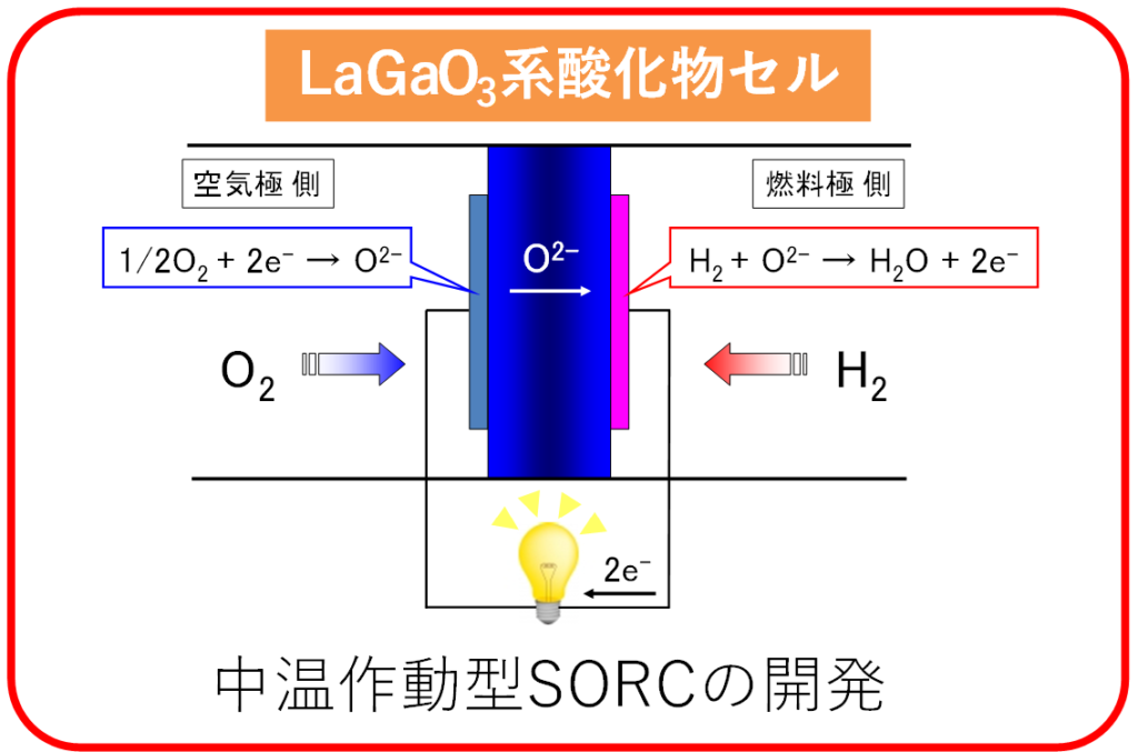 新規酸素イオン伝導体のLaGaO₃系酸化物を固体電解質として用いる高出力な酸化物固体電解質型燃料電池と電解セルを用いる高効率な水素製造、CO₂の電解