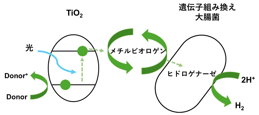 光変換光エネルギー水素エネルギー 光触媒、バイオ触媒、水素発生、無機/バイオハイブリッド光触媒 大﨑 穣 助教 研究ユニット:エネルギー変換科学ユニット E-mail: 研究概要 光触媒とバイオ触媒を連結した無機/バイオハイブリッド光触媒による高効率かつ高選択的な物質変換系の構築 バイオ触媒である酵素は人工的に実現が難しい、あるいはエネルギー的に非効率な反応を高選択的かつ高効率に実現している。そこで酵素反応を無機光触媒と組み合わせることで光エネルギーを用いて駆動、あるいは加速させ、高効率かつ高選択的な物質変換系の構築を目指している。 技術 無機/バイオハイブリッド光触媒による水素生成