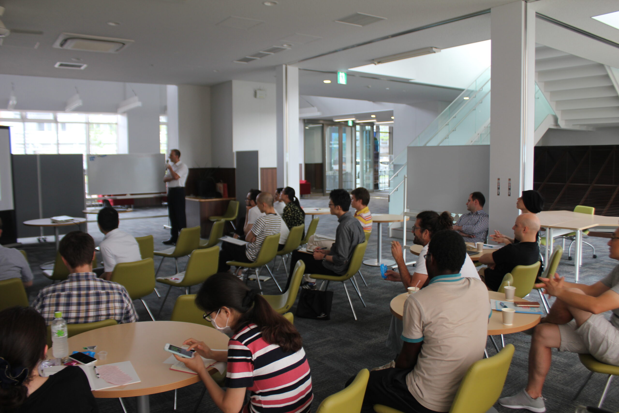 第108回 Institute Interest Seminar Seriesを開催しました( 2017.7.18 ) 2017.07.18 IISS シェアする: 開催日時 2017年7月18日(火)午後3:00 〜 午後4:30 開催会場伊都キャンパス カーボンニュートラル・エネルギー国際研究所 第1研究棟 1Fロビー 発 表 者ソン ソンメイ 准教授 (光エネルギー変換分子デバイス部門) → (Abstract) ディモフ ニコライ 学術研究員 (電気化学エネルギー変換部門 ) → (Abstract) 座 長ギュマン カウル クルビル 学術研究員 (電気化学エネルギー変換部門) 関連リンク → (セミナー情報) ソン ソンメイ 准教授 ディモフ ニコライ 学術研究員 QA 会場の様子