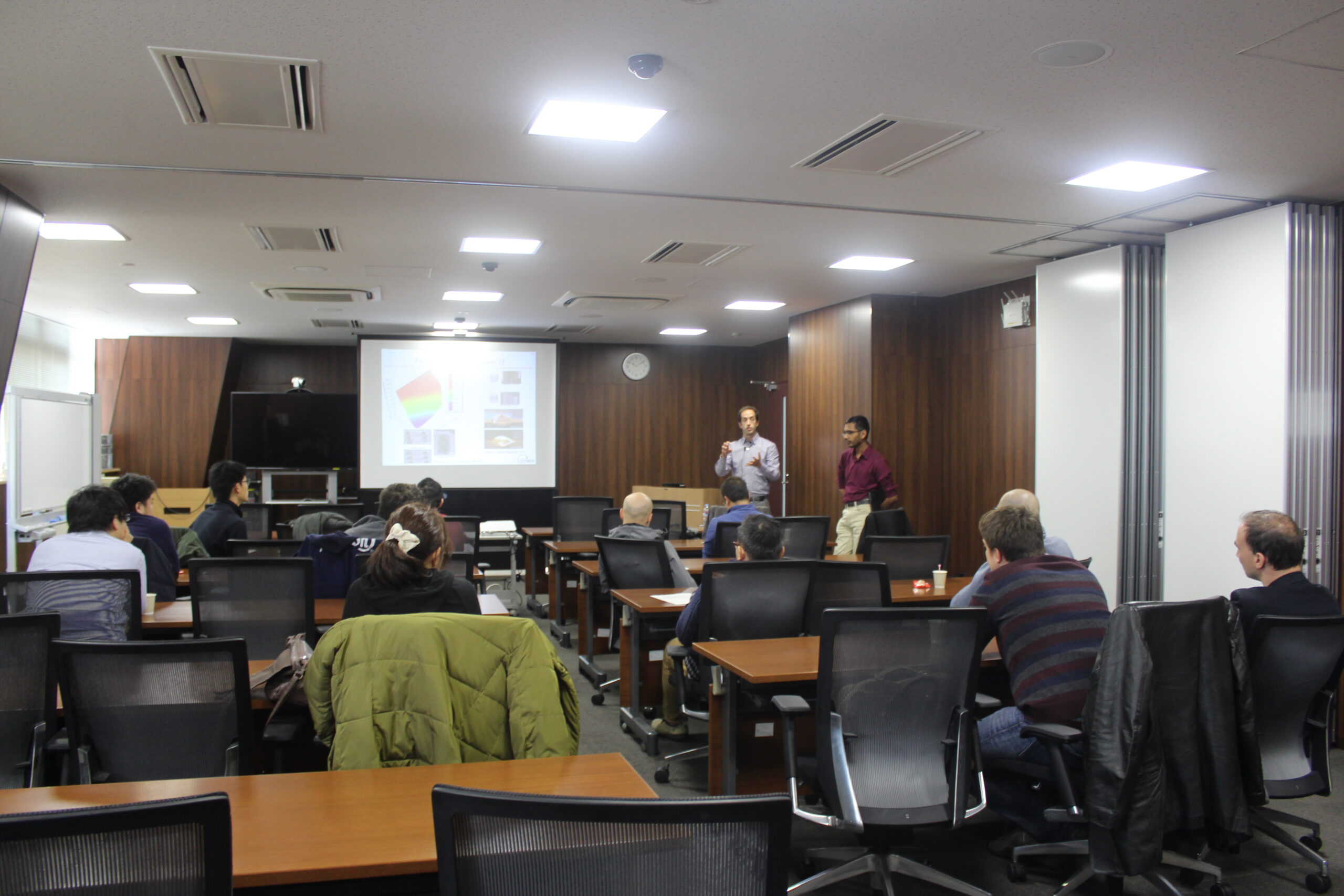 第103回 Institute Interest Seminar Seriesを開催しました ( 2017.3.9) 2017.03.09 IISS シェアする: 開催日時 2017年3月9日(木)午前12:00 〜 開催会場伊都キャンパス カーボンニュートラル・エネルギー国際研究所 第1研究棟2F 大会議室 発 表 者シャルマ ヴァイプール 博士課程学生 (インド工科大学、マンディ校) → (Abstract) オレホン ダニエル 助教 → (Abstract) 座 長ハリーシュ シブシャンカラン 助教 関連リンク → (セミナー情報) シャルマ ヴァイプール 博士課程学生 オレホン ダニエル 助教 QA 会場の様子