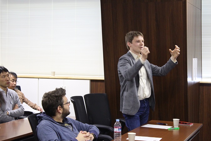 第88回 Institute Interest Seminar Seriesを開催しました ( 2016.4.20) 2016.04.20 IISS シェアする: 開催日時 2016年4月20日(水)午前9:00 〜 午前10:30 開催会場伊都キャンパス カーボンニュートラル・エネルギー国際研究所 2F 大会議室 発 表 者 仲本 正彦 工学府博士課程学生 → ( Abstract ) 星野 友 准教授 工学研究院応用化学部門 → ( Abstract ) 座 長谷口 育雄 准教授 (CO2分離・転換部門) 関連リンク → (セミナー情報) 仲本 正彦 博士課程学生 星野 友 准教授 会場の様子 QAセッション