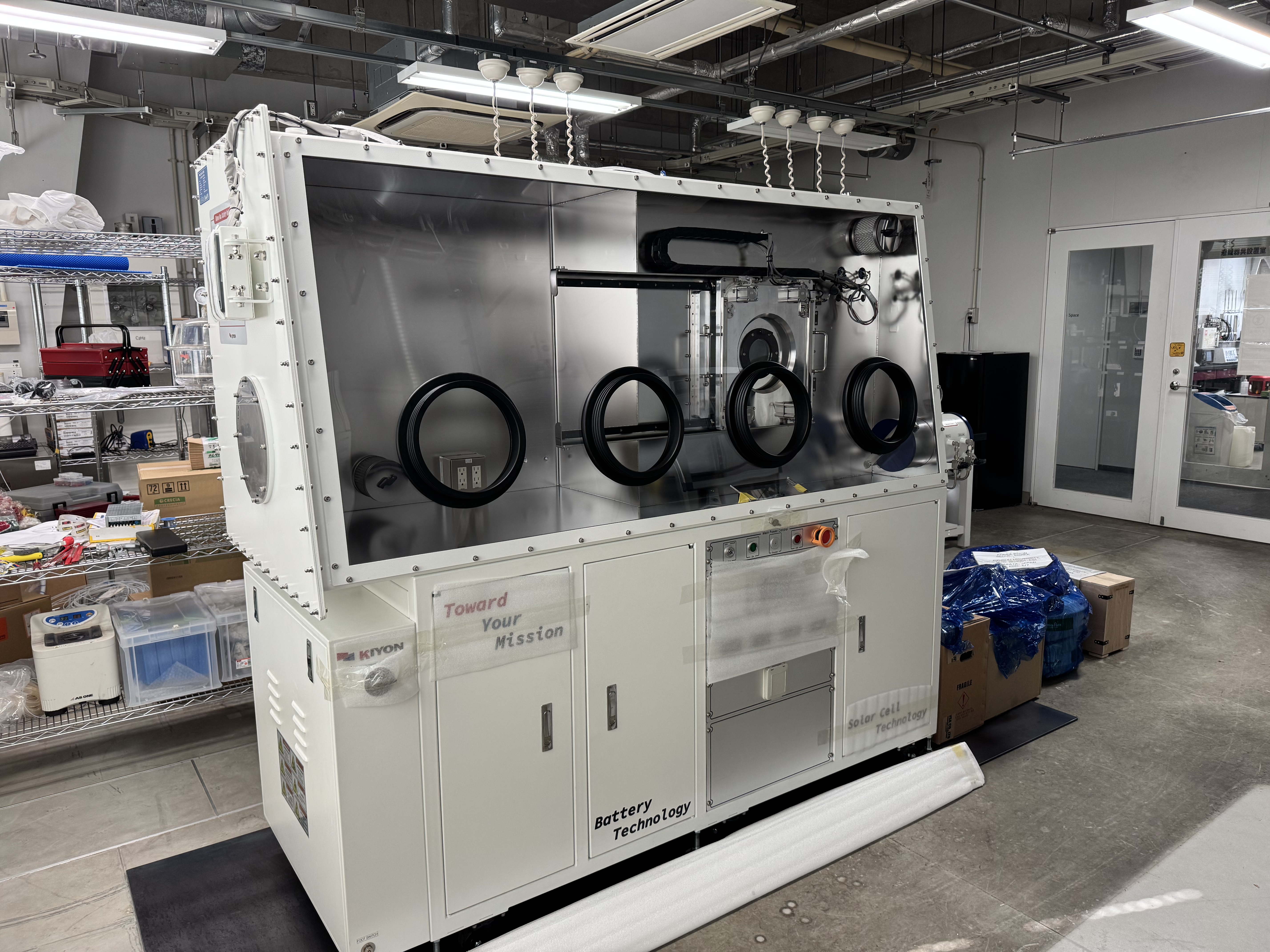 - The vacuum evaporator integrated glovebox system (donation from Korea Kiyon) was moved in to my laboratory. Check photos 1, 2, 3, 4 here.