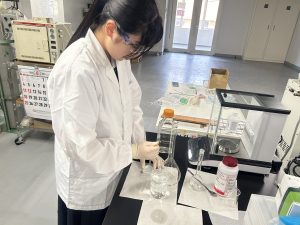 1日目 水電解で用いる溶液濃度の計算と、溶液調製を行ってもらいました。