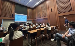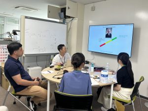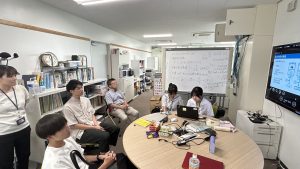 3日目 松本先生とウズベキスタンから訪問されたウルグベッグ先生、学生さんでビッグオレンジで昼食をとりました。午後からは、博士のRishadさんに自身の研究内容を紹介してもらいました。国際研究所アイスナーならではの国際交流が経験できたのではないでしょうか。